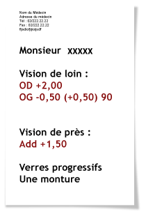 Votre ordonnance permet de transmettre des informations bien précises à votre opticien. Pour bien comprendre le sens des indications qui s'y trouvent, suivez ce guide :