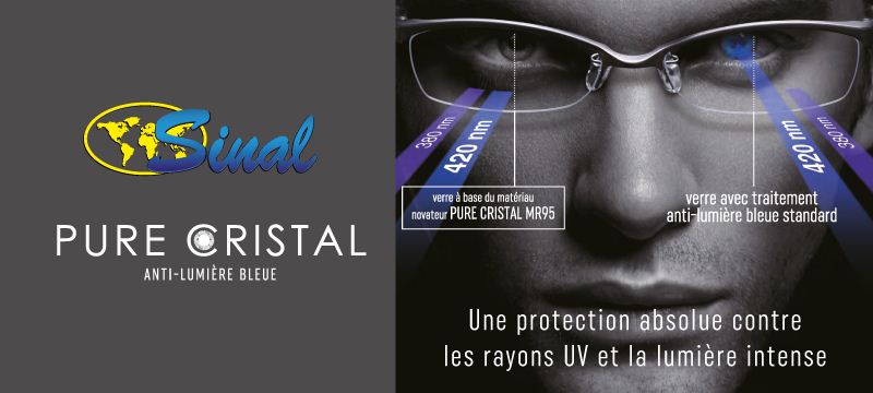 Grâce à son filtre intelligent, le PURE CRISTAL MR95 bloque jusqu'à 83% de la bande la plus énergétique de la lumière bleue indésirable comprise entre 380 et 480 nm, tout en laissant passer la lumière visuelle essentielle. Sa formule de composants absorbe les UV évitant ainsi leur réflexion dans l’oeil.