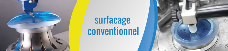 La limitation de cette méthode de surfaçage réside dans le fait qu’il existe seulement un nombre limité de surfaces progressives disponibles et il est impossible de produire des verres personnalisés.