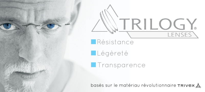 Les verre Trilogy sont absolument solides et peuvent résister aux chocs les plus violents, ce qui est parfait pour les personnes pratiquant des sports ou des activités à mouvements extrêmes. Ces verres bloquent 100% des UV et résistent aux produits chimiques.